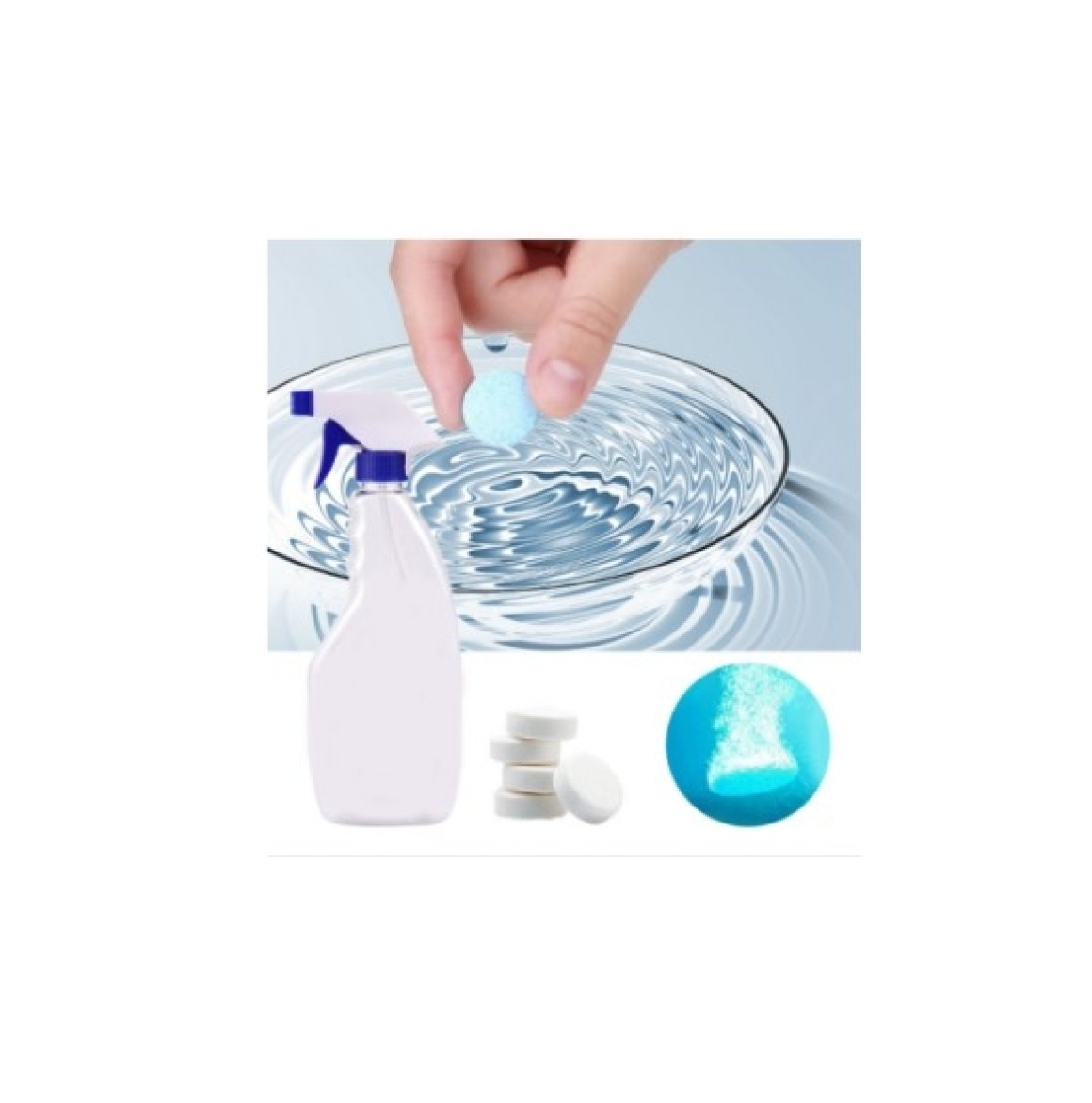Diluir 1 unidade do produto de 30g em 5 Litros de água, aguardar tempo de efervescência (10 minutos), com o uso de um borrifador aplicar sobre um pano e passar sobre a superfície a ser limpa e higienizada. Não usar ao sol e nem com a superfície aquecida.